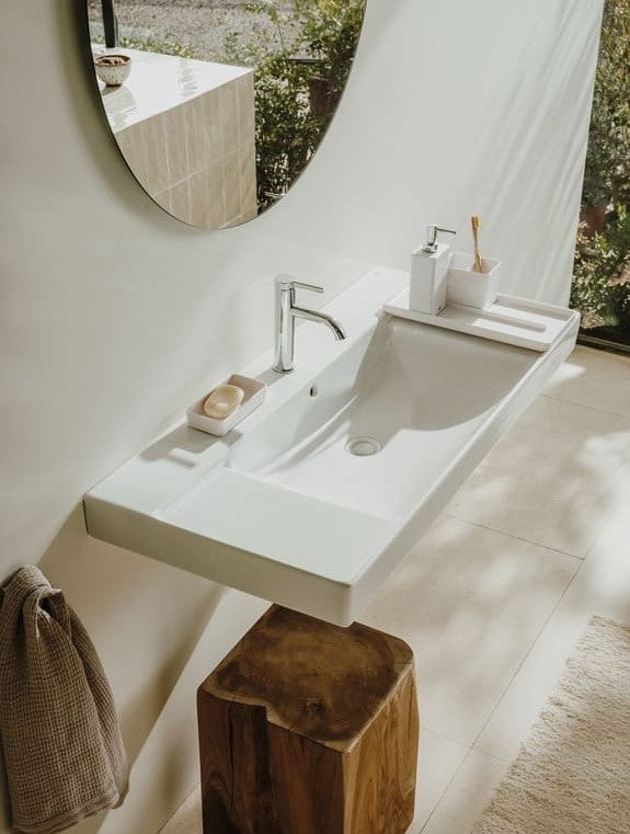 Ona Lavoar baie suspendat 100x46 cm, polite laterale, alb