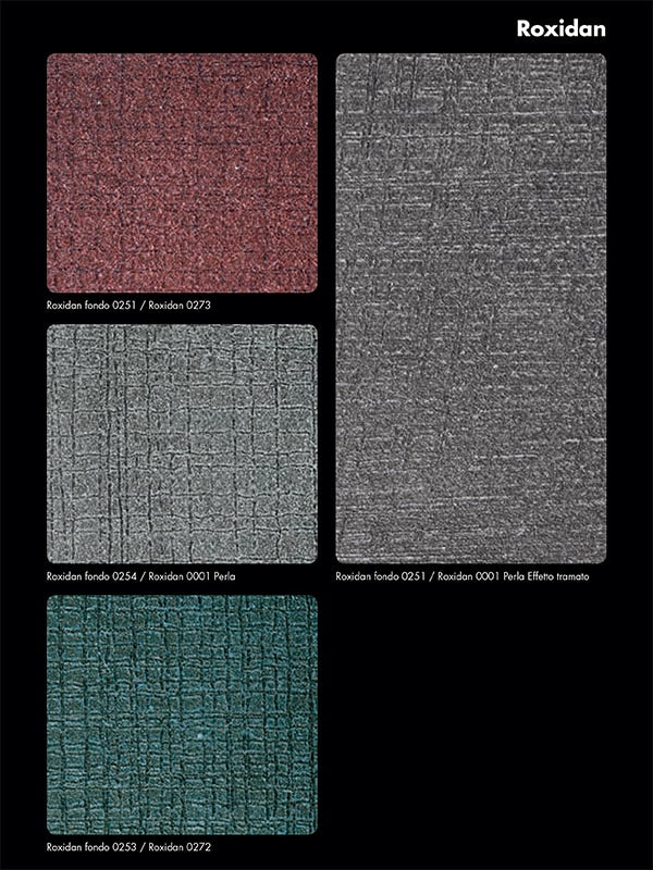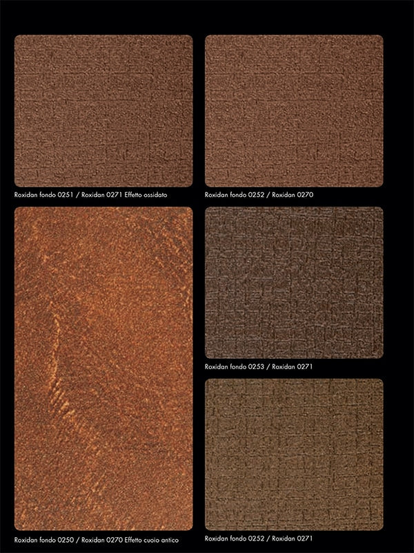 Disponibil în variantele PERLA și PLATINO, ROXIDAN oferă efecte unice: ROXIDAN PERLA creează un efect vibrant și autentic de fier oxidat, cunoscut sub numele de efect „corten”, în timp ce ROXIDAN PLATINO adaugă o patină subtilă de gri deschis, amintind de metalele neferoase.