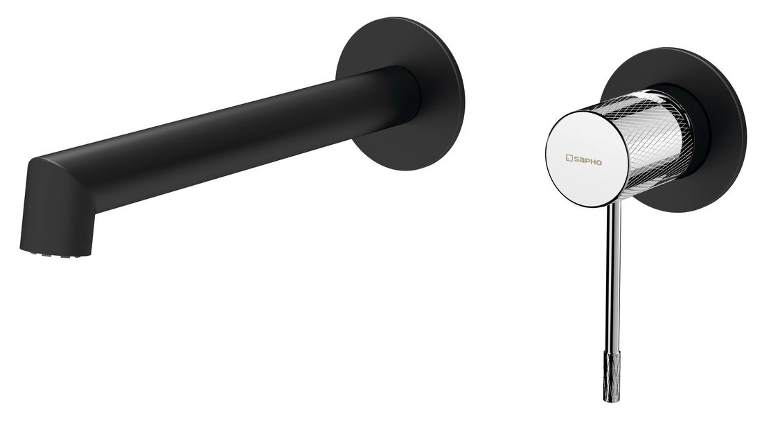 SOLARIS Baterie lavoar 2 orificii montaj pe perete, negru mat/crom